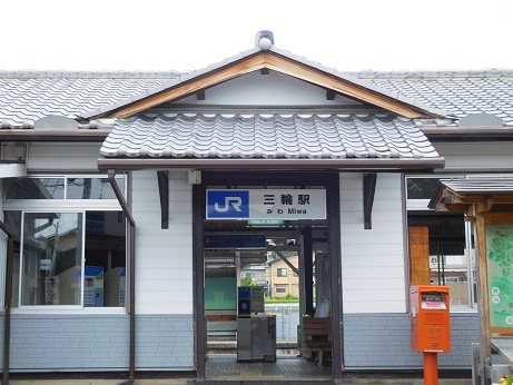 JR桜井線三輪駅。待合室の椅子で休憩できます。