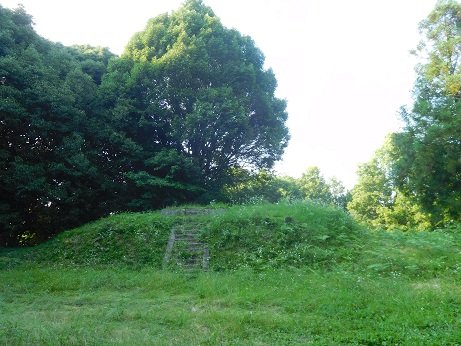 天武持統合葬陵。写真は正面からですが、コースからは裏側がみえます。