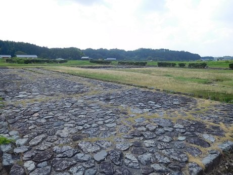 亀石。中央公民館のまえをすぎ、すこし西にあります。