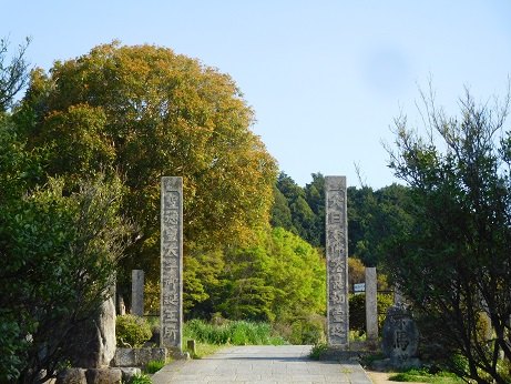 橘寺の「聖徳皇太子御誕生所」の石の門柱。