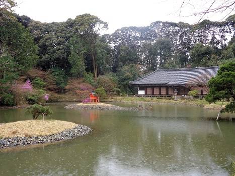 浄瑠璃寺の浄土式庭園。右手の本堂には九体の阿弥陀仏が安置されていることから九体寺とも。