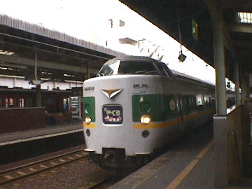 1999年10月6日。大阪駅11番線から11:42発の特急「雷鳥17号」富山行きに乗車、武生を目指す。指定席車であるが、乗車率は20%といったところ。約26分で京都に到着。やがて湖西線に入り、オール立体化の線路を時速130キロで駆け抜けていく。車窓からはエリ漁が見える。北陸本線と合流する近江塩津の手前で直流から交流への走行中切り替えが行われ、車内灯が消灯。右手かなたに北陸線下りの「加越10号」の走る姿が見える。深坂トンネルを抜けて13:01敦賀に停車。13:23に武生に到着。まず、駅から歩いて5分ほどの『いせや』を目指す。注文したのはもちろん「おろしそば」。大盛りにしてもらった。挽きぐるみの黒いそばで、皿に盛ってあり、上にはきざみ葱と鰹の削り節がのっている。つゆには大根おろしが混ぜてある。くせのないそばで、つゆも上品なあじである。そばを食べてしまってから、徳利のつゆも飲んでしまった。