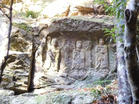 奥山ドライブウェイに入り、すこしいって左に折れると首切り地蔵、直進すると春日山石窟仏方向。